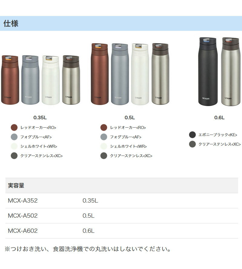 LNK0.35Lフォグブルー0.35Lレッドオーカー0.35Lシェルホワイト0.35Lクリアーステンレス0.5Lフォグブルー0.5Lレッドオーカー0.5Lシェルホワイト0.5Lクリアーステンレス0.6Lエボニーブラック0.6Lクリアーステンレス