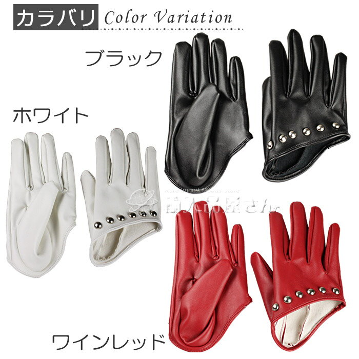 ショートグローブ 黒(ブラック) 手袋 ハーフグローブ スタッズ/鋲付き 男女兼用(ユニセックス メンズ レディース) 合皮(フェイクレザー PU) 白(ホワイト) 赤(レッド) ダンス 衣装 ウェディング コスプレ
