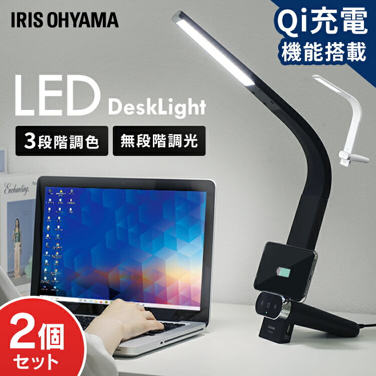 [2個セット]デスクライト 学習机 おしゃれ テーブルランプ LDL-QLDL送料無料 目に優しい 明るい かわいい 学習 調光 調色 スタンドライト 卓上ライト 読書灯 LED ベッドサイド 卓上スタンド デスクスタンド Qi充電シリーズ USB 学習用 寝室 小型 新生活 アイリスオーヤマ
